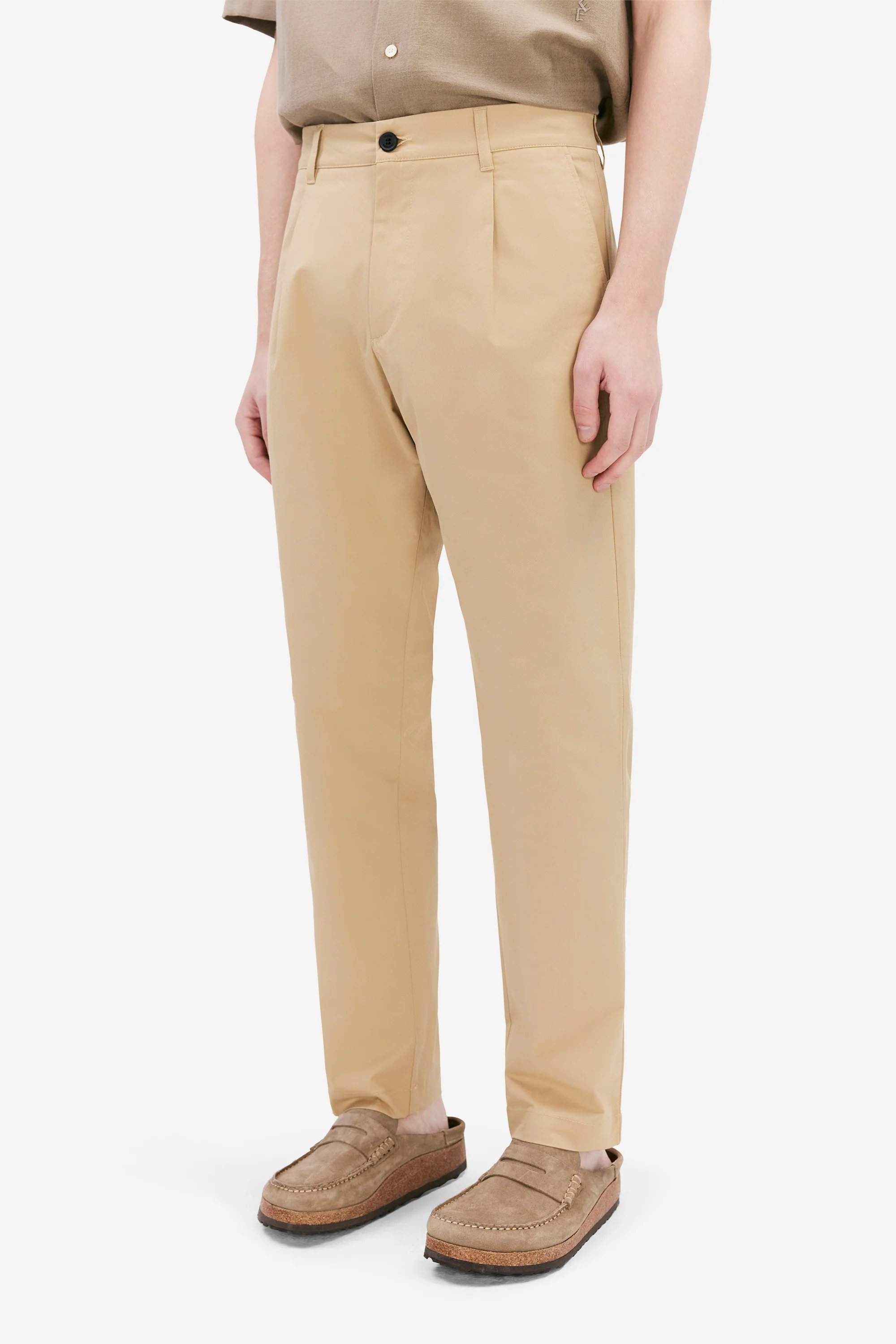 Arnason is a fresh pair of pants made from a clean and light Cotton Lyocell fabric. It features a relaxed thigh, tapered leg, and pleated front, making it the perfect summer pant. The model is 186 cm tall and wearing a size 31. Ref. 330897134