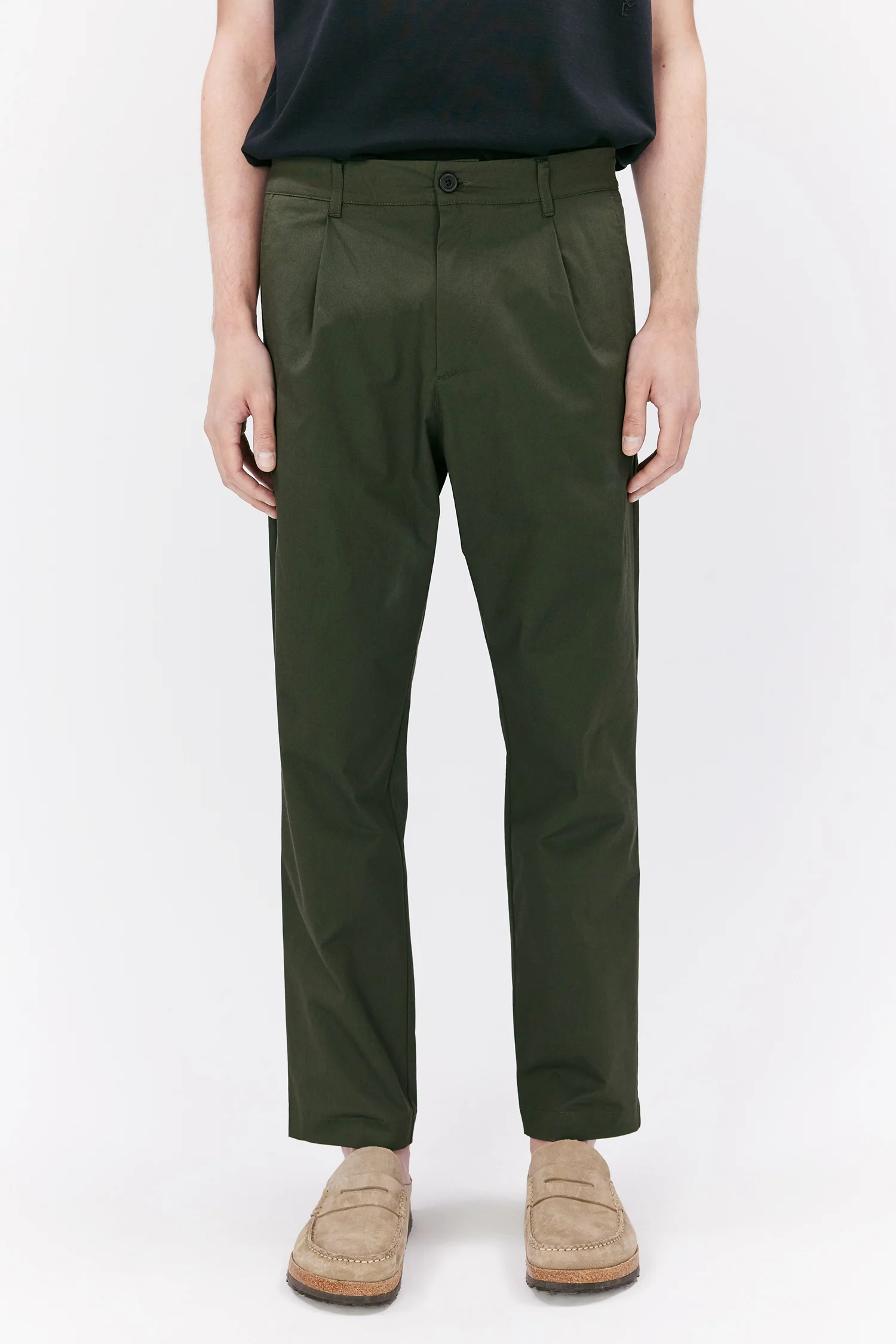 Arnason is a fresh pair of pants made from a clean and light Cotton Lyocell fabric. It features a relaxed thigh, tapered leg, and pleated front, making it the perfect summer pant. The model is 187 cm tall and wearing a size 31. Ref. 330897055