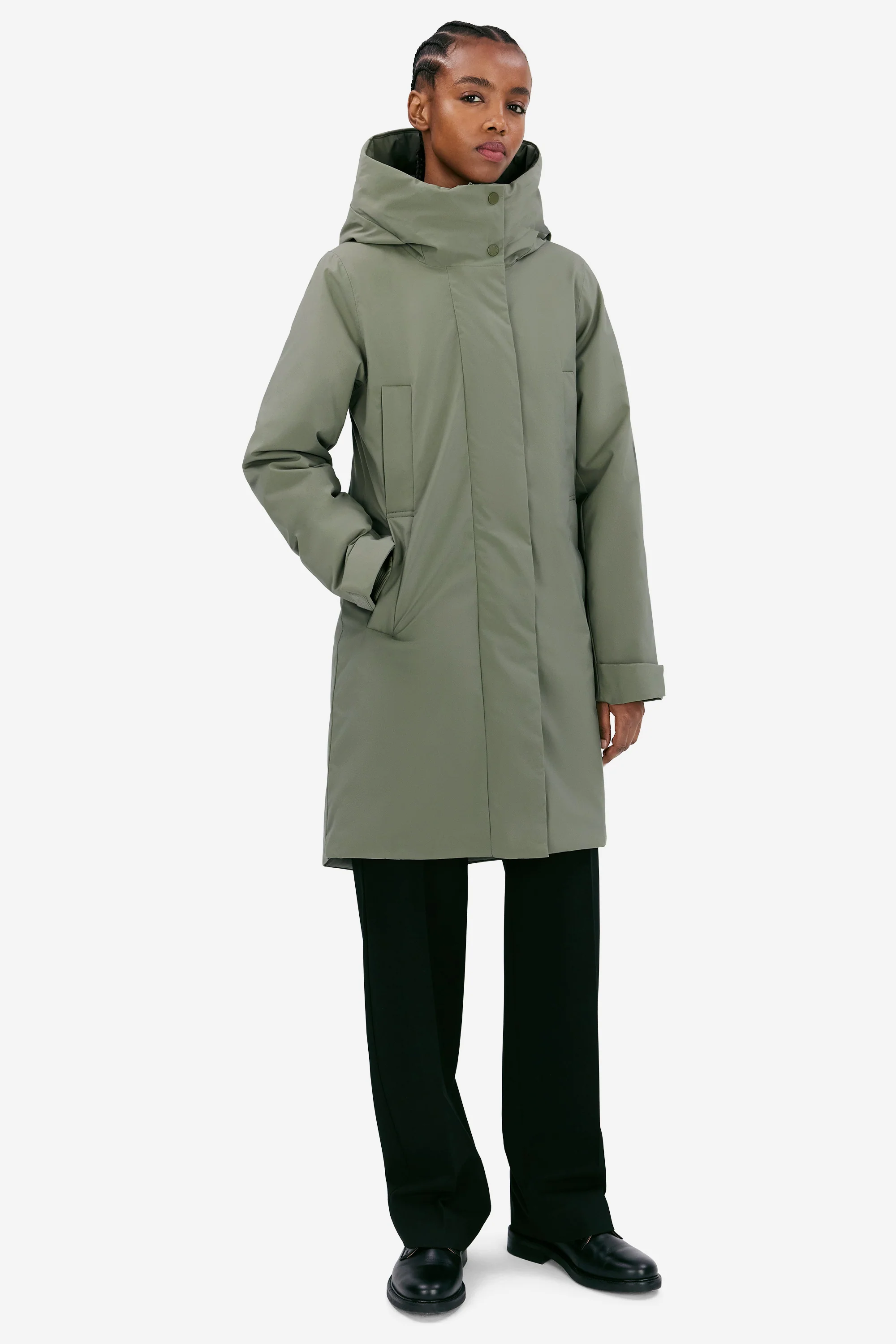 Eline is a hooded winter jacket with a fitted silhouette made in a Pet Poly 5K fabric. The material is quick-drying and has a waterproof membrane that protects from sudden downpour. The 4-way stretch adds comfort while a brilliant colour fastness maintains the jacket’s fresh look from one season to another. Details include double welt pockets and vital taped seams. Eline brings a sophisticated, active look in cold city winters. The model is 174 cm tall and wearing a size S. Length of winter jacket: 96 cm (size S). Ref. 331192926
