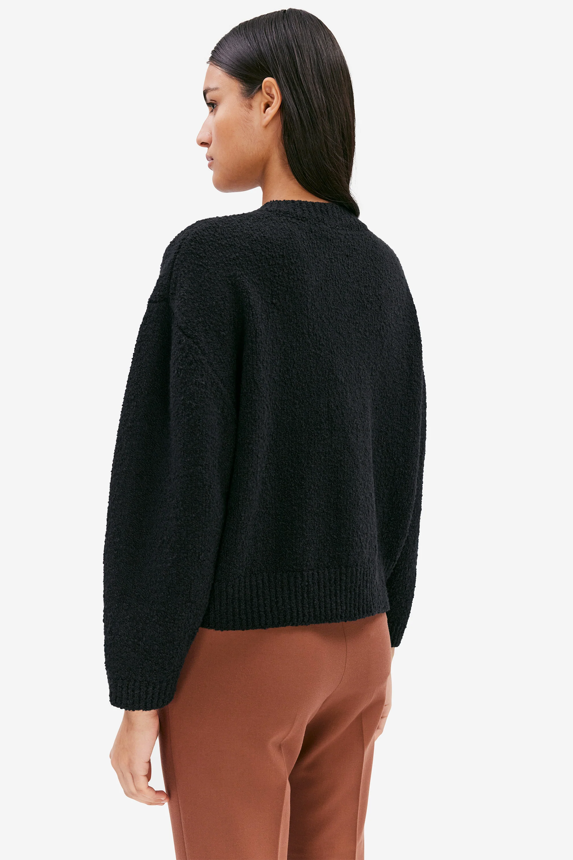 Erna is a short-bodied knitted cardigan made from a Soft Cotton Mix fabric. It’s soft, chunky, and has buttons — what more could you ask for in a cosy layering piece? Wear Erna to coffee dates, or just to look cute around the house. The model is 177 cm tall and wearing a size S. Length of the garment: 51,5 cm (size S). Ref. 331210110