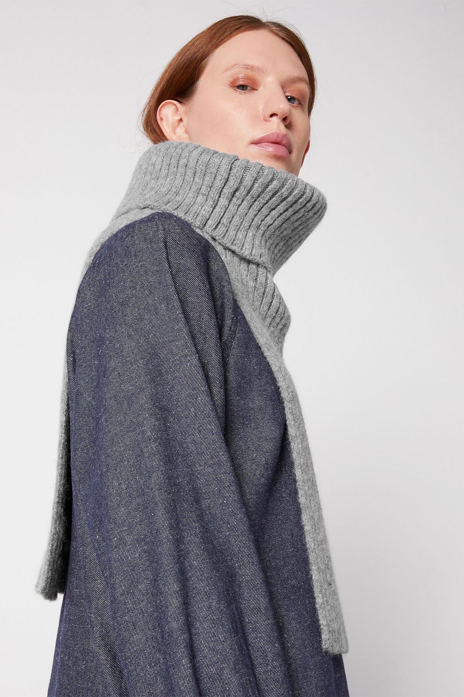 The Knit Polo is a unisex jacquard knit accessory. Made from an ultrasoft, insulative Alpaca Wool, it features a generous collar that can be folded or pulled down for a versatile look. Wear as a warming accessory under a jacket, or as a statement piece layered over winter outfits. Ref. 330745112