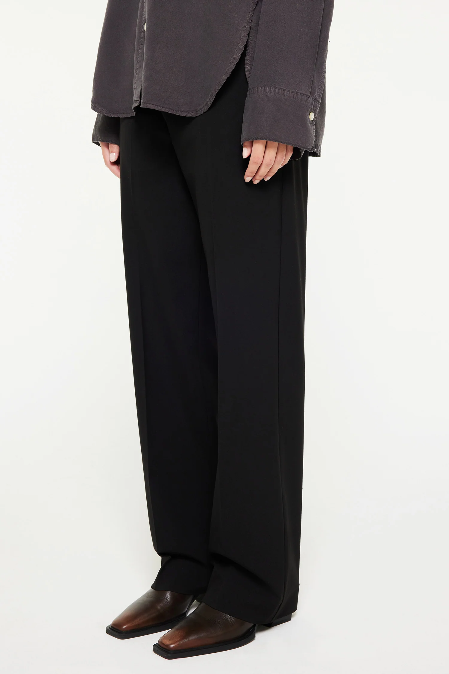 Lilja is a straight-leg pair of trousers made from Light Flex fabric. The material is flowy and dressed. Details include center creases at front and back, slanted front pockets and two back pockets. Lilja elevates everyday outfits with a sense of sophistication. The model is 177 cm tall and wearing a size 36. Ref. 331254110