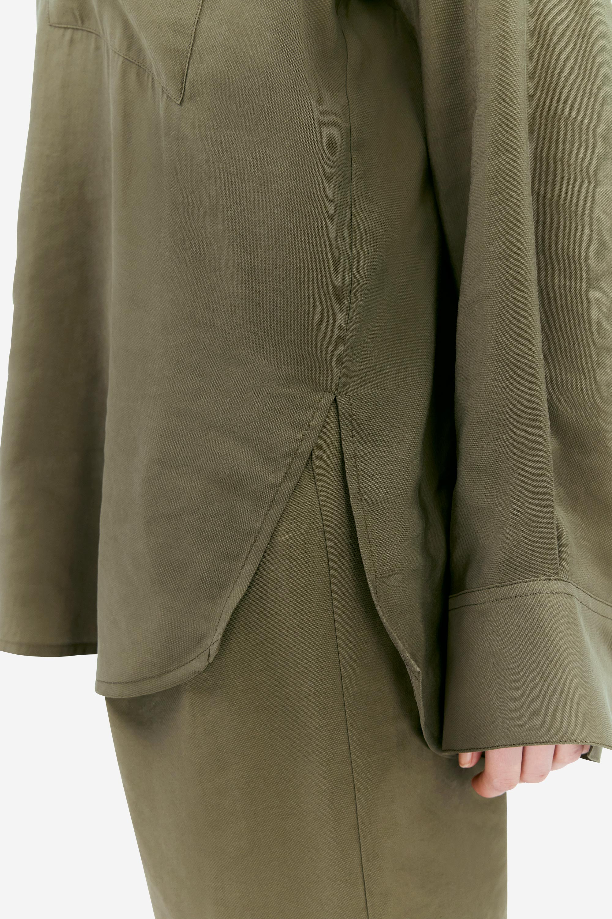 Milena is a relaxed-fit shirt made from Modal Blend fabric. The material is soft and drapey, giving this garment a lighter-than-air feeling. Details include an open v-neckline, raglan sleeves, and a curved hem with high slits in the sides. Pair Milena with the Lisette trousers for a complete summery outfit. The model is 175 cm tall and wearing a size S. Length of the garment: 80 cm (size S). Ref. 331121209