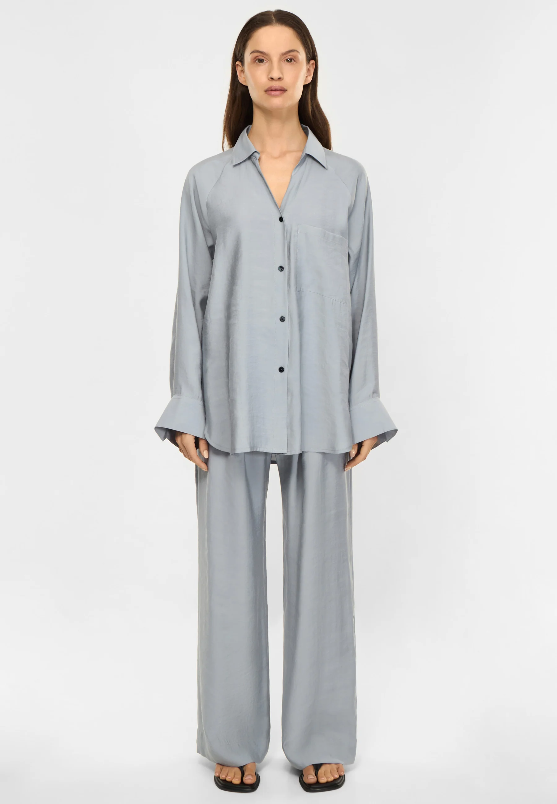 Milena is a relaxed-fit shirt made from Modal Blend fabric. The material is soft and drapey, giving this garment a lighter-than-air feeling. Details include an open v-neckline, raglan sleeves, and a curved hem with high slits in the sides. Pair Milena with the Lisette trousers for a complete summery outfit.