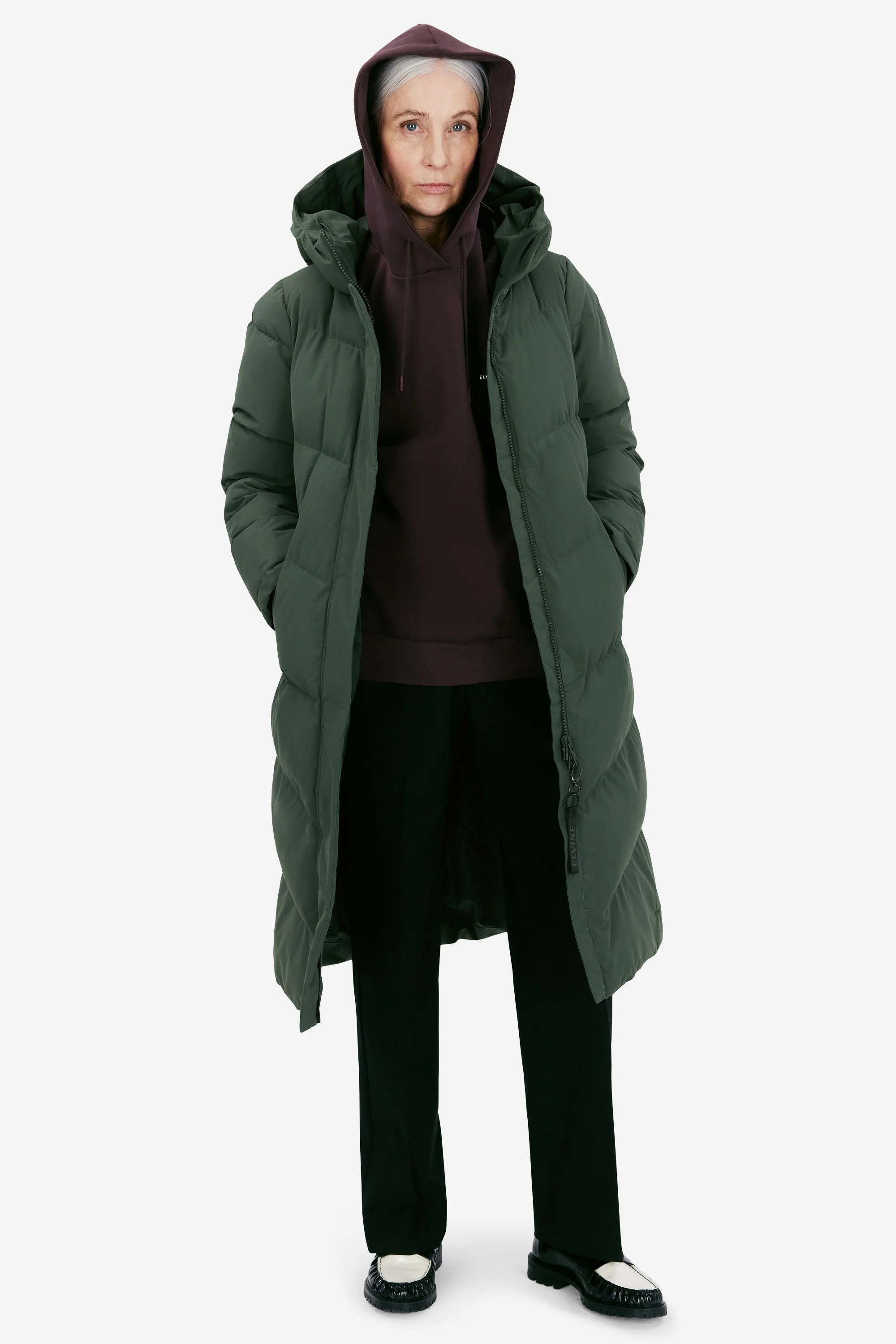 Being one of ELVINE’s warmest parkas, Nalani is made fit for extreme Scandinavian winter climate. This long winter puffer is richly filled with Ecodown fibers, a sustainable, exceptionally warm down imitation. Nalani is the one to go for when harsh winter hits the streets. If between sizes, choose one size down. The model is 177 cm tall and wearing a size S. Length of the winter jacket: 109 cm (size S). Ref. 330433093