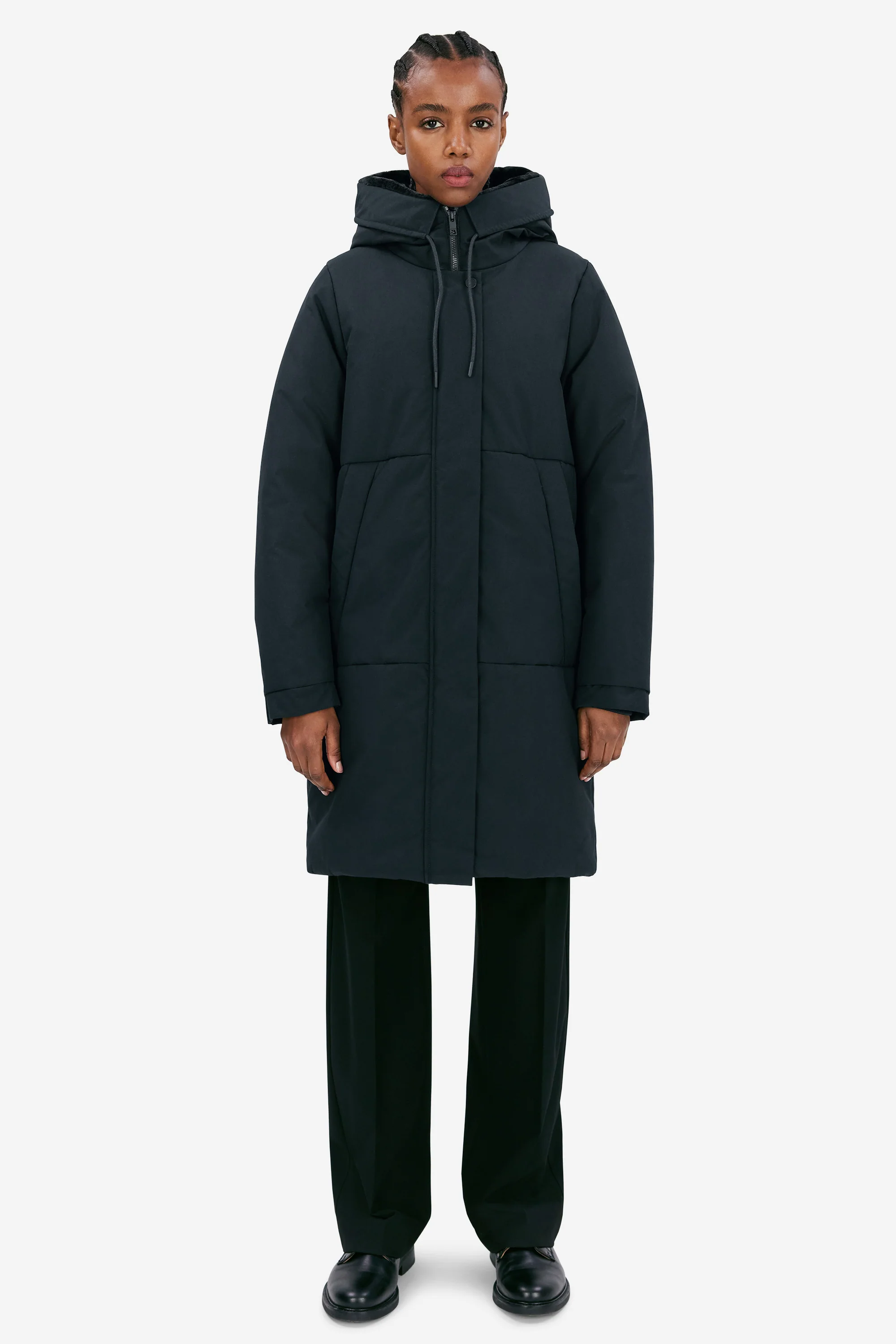 Tiril is the modern heavy winter parka in a straight silhouette with a generous faux fur-lined hood. The jacket is padded with Thermore® EVOdown®, a down imitation with exceptional insulating qualities. A waterproof membrane protects from heavy downpour, making Tiril a true survivor during those harsh winters lying ahead. If between sizes, choose one size down. The model is 174 cm tall and wearing a size S. Length of the winter jacket: 92 cm (size S). Ref. 193506240