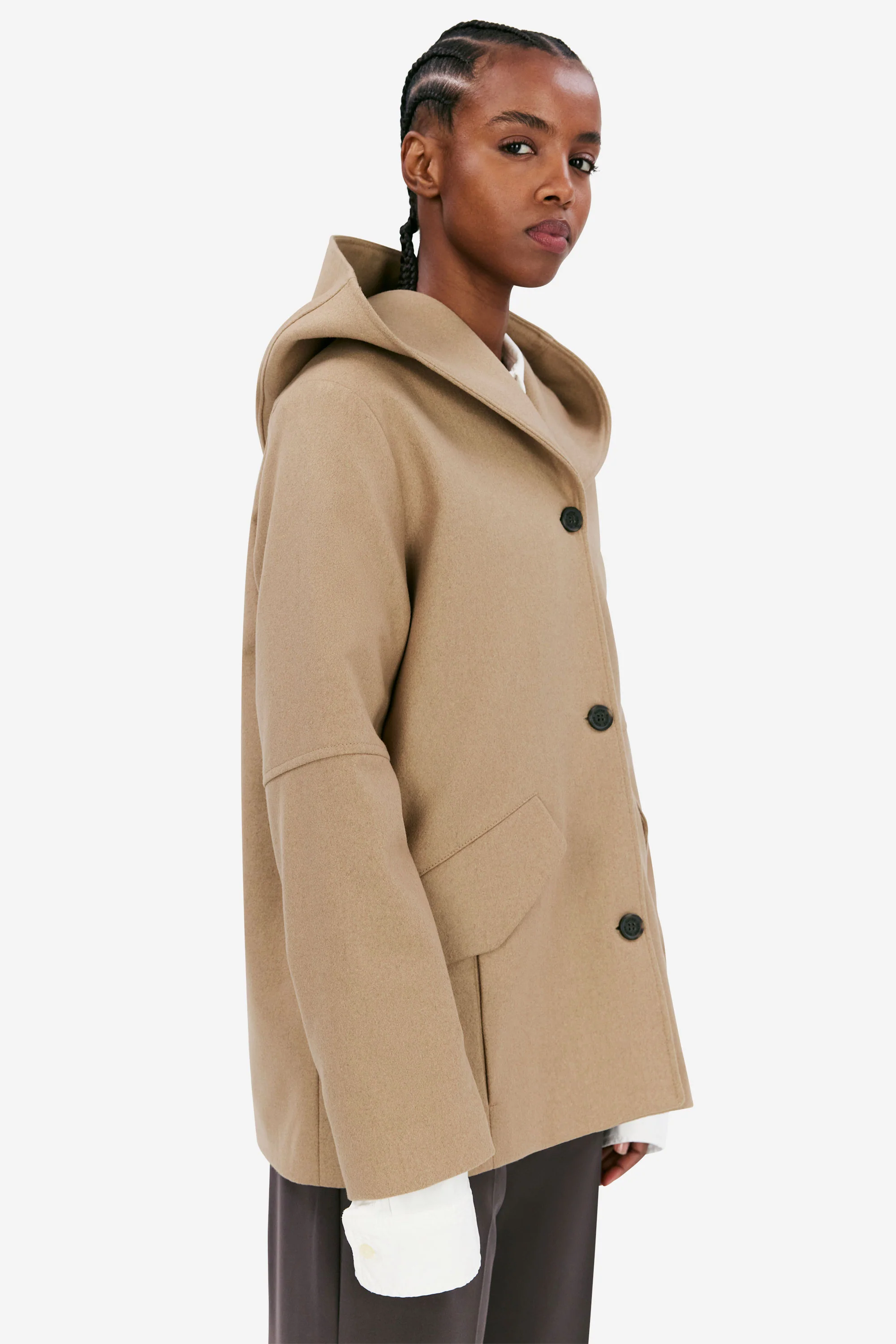 Velda is a duffel-inspired wool jacket perfect for days that require both function and style. The unique, full-coverage duffel hood protects its wearer from the elements, yet lies perfectly flat against the back of the garment when not in use. A seamless transition for unpredictable seasons. The model is 174 cm tall and wearing a size S. Length of jacket 72 cm (size S). Ref. 330527251
